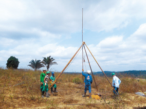 2015年9月,施工人员在线路工地开展塔基勘探。